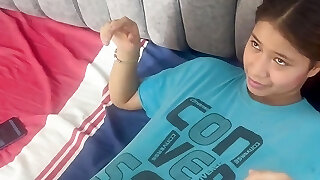 I find my lil' stepsister with my clothes on, I take them off and I screw her hard until I jizm in her pussy