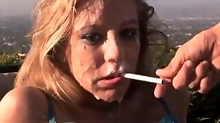 Lewd student dame with an innocent face loves to suck cock and get cum on her face after titfuck