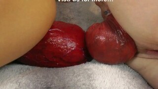 FluidSuspension Red Latex Gloves Double Fisting Extreme Gape for Assfucking Squirting Sissy Bi-atch