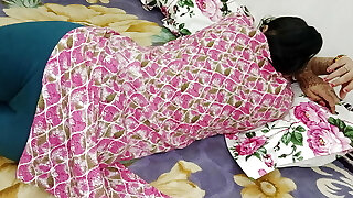 (Family Strokes) Indian 19 year old Busty StepMom observing phone on bed, then i fuck her with condom - Cum mischievous Pussy