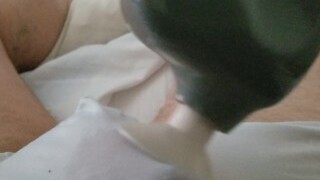 Gaping real wife's cunt with brief wide plaything - this plow pig's wrecked cunt takes it to the base