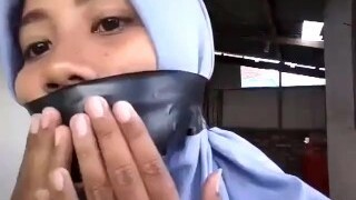 indonesian hijab damsel selfgagged