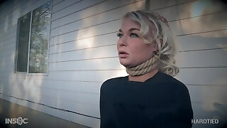 Chubby ginger-haired Summer Hart gets a painful torture session outdoors