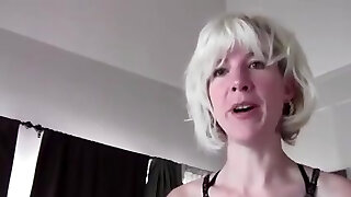 sexy mistress femdom blowjob - sucking my slave's massive cock & licking his balls. My whip makes him shriek in gusto