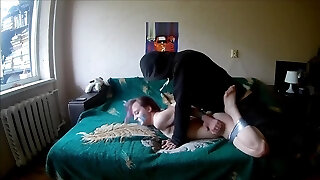 A shaven, bearded and fur covered male is cruel to his fabulous mature wife for the amusement of people))