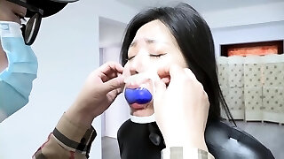 sahrye gets ball ring and pump ball-gagged in catsuit