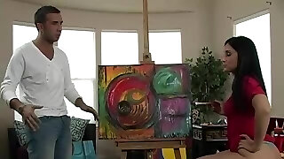 Step step-sister gives a blowjob and pounds her stepbrother in stocking so that he does not tell his parents anything